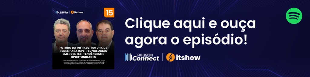 No Futurecom Connect, plataforma de conteúdo estratégico da Futurecom, três especialistas de renome compartilharam suas visões sobre como os ISPs podem se posicionar de forma competitiva diante desse cenário: Leonardo Furtado, engenheiro de redes e professor; Sérgio Cardoso, engenheiro e diretor de operações da Arsitec; e Ivan Ianelli, engenheiro e presidente da ABEPREST.